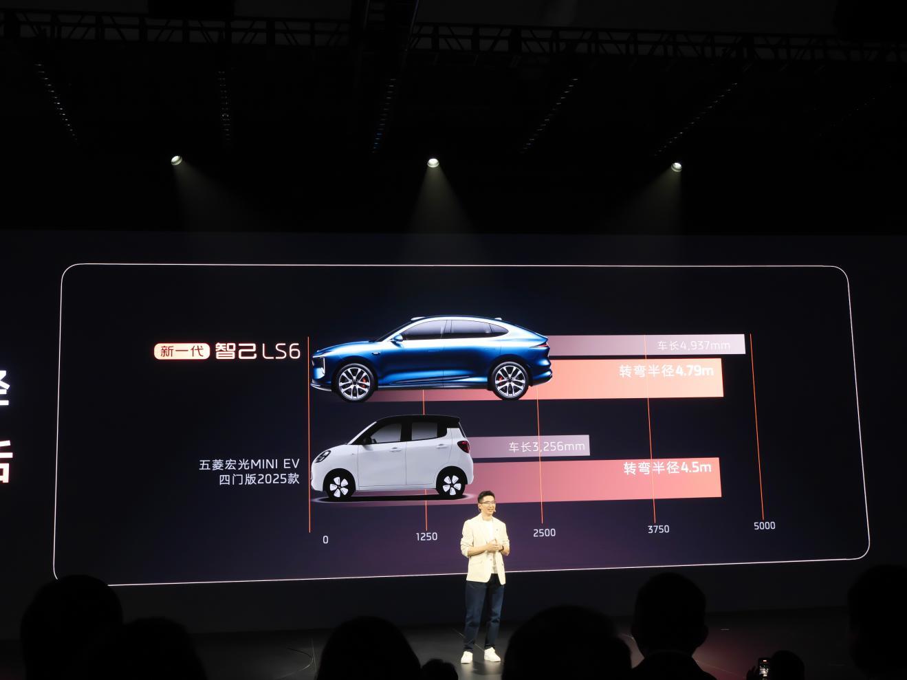 新一代LS6搭载的灵蜥数字底盘2.0系统,解决了中大型SUV的操控痛点。通过双向18°后轮转向技术,这台车长4937mm的SUV转弯半径仅有4.79米,与四门版的五菱宏光MINI EV相当。