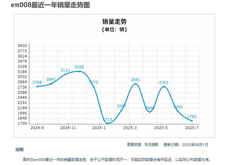 而东风奕派eπ008七月销量为1785辆,也是今年来第二次月销量进入2千台以下,由于基数较低,所以几百台的销量变化也会造成环比波动较大。2025年eπ008累计销量为15294辆,在中国品牌车型中,月销量排名第132名,年销量排名第119名。