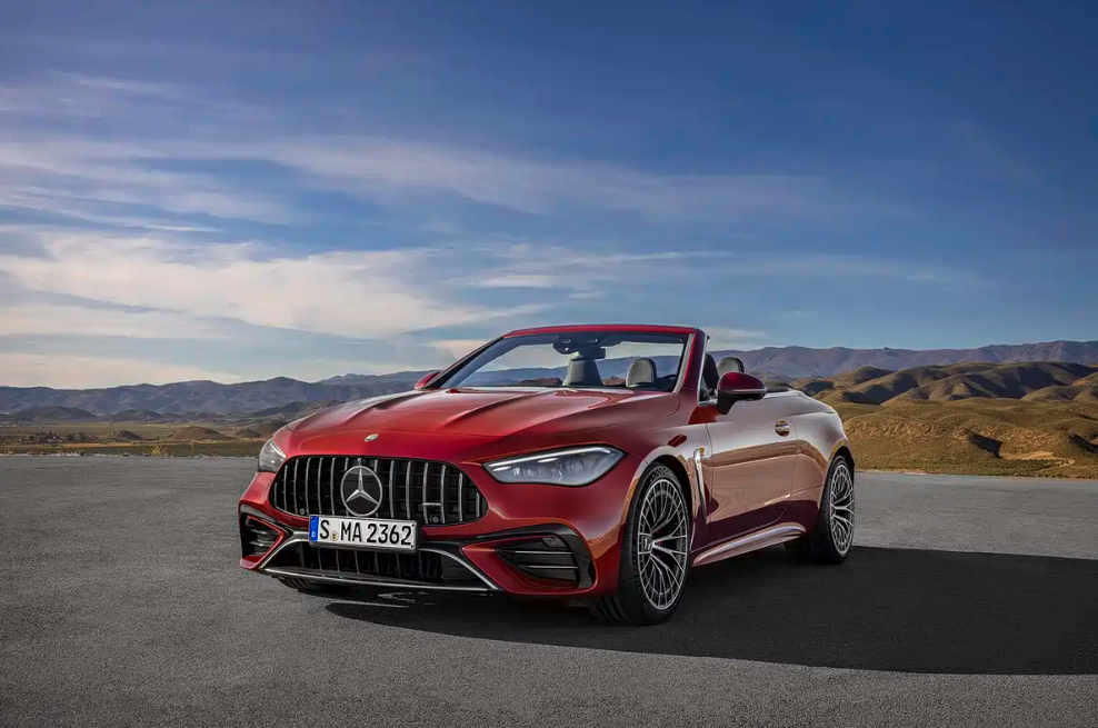 外观方面,新车前脸应用AMG标志性的直瀑式格栅,相较普通版车型,AMG CLE 53敞篷版前包围的进气口更加宽大,并提供更大尺寸的多辐式轮毂与前四活塞红色卡钳,轮距也有进一步加宽。新车的软顶敞篷机构可在车速60km/h以下一键电动开闭,开关时间约20秒。