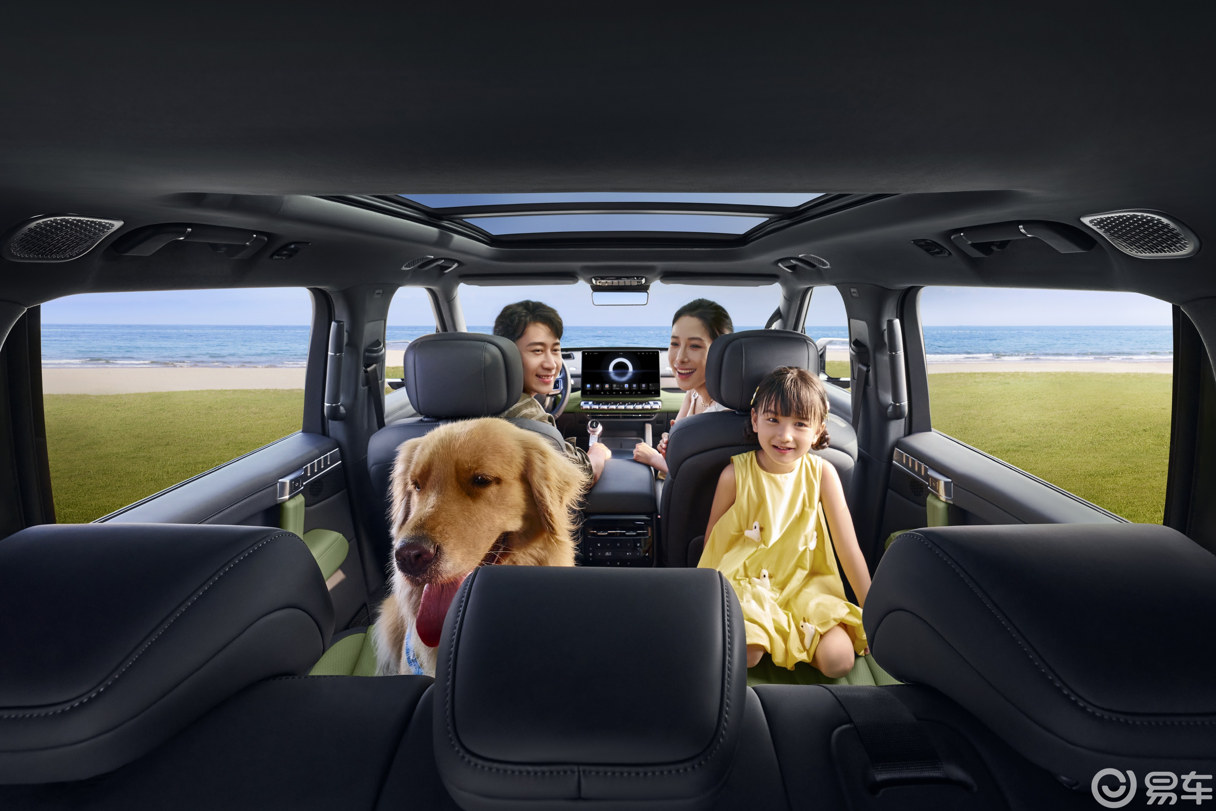越野硬实力方面,双向20°后轮转向让5.1米长的车身拥有5.2米最小转弯半径,城市掉头或野外绕障都很灵活。150mm可调空气悬架能在1850mm的低矮姿态和333mm最小离地间隙之间切换,地库限高和陡坡碎石路都能应对。505kW综合功率、848N·m综合扭矩的动力储备,也能满足越野和高速超车的需求。