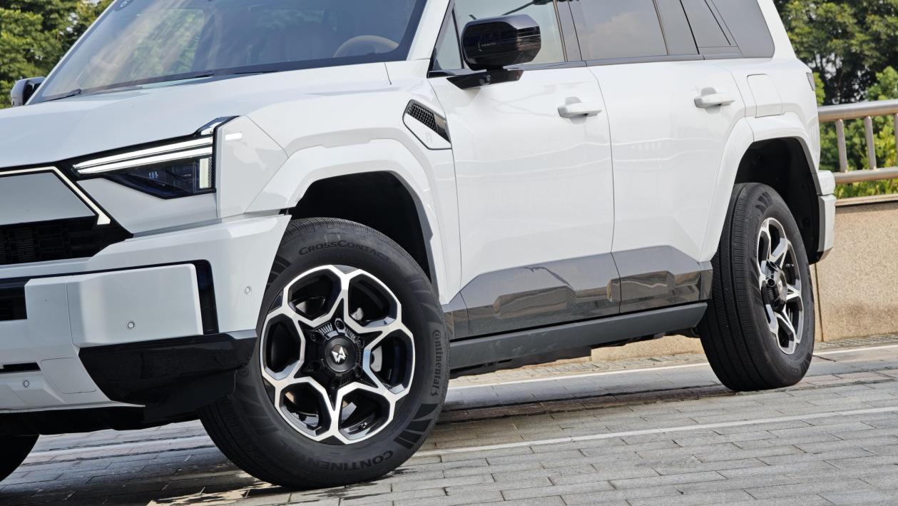 作为一辆新能源硬派越野车,猛士M817除了拥有强劲的动力,也提供空气悬架系统,可提供向上105mm,向下45mm,总计150mm的悬架调节行程,M817最大涉水深度为900mm,其它通过性数据方面,接近角37.7度、离去角37度、纵向通过角27.3度、最大离地间隙333mm。