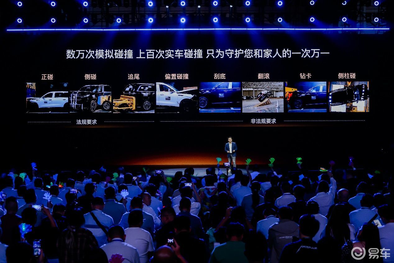 安全方面,是风云T11对家庭用户最郑重的承诺。在发布会现场,风云T11进行了一场极具视觉冲击力的实车碰撞展示,直观地展现了其在安全方面的硬核实力。车辆在高速碰撞后乘员舱保持完好,气囊精准展开,A柱、B柱无结构性失效,印证其在极端事故中对全车乘员的周全守护。