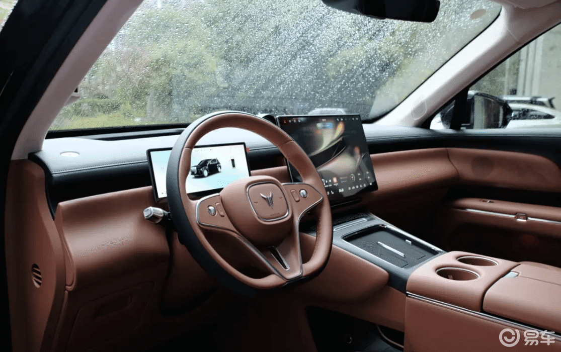 而当你拉开那同级唯一标配的智能感应电动门,一个名为“山海万象”的座舱世界在眼前展开。环抱式布局如鲲鹏展翼,舒展的横向线条从中控延伸至门板,营造出身心安适的沉浸感。山水流韵木饰、以5000+点阵描绘远山近水的皮革孔纹,以及覆盖超90%面积的云屿悬浮软包,共同构建了触手可及的温润与高级。