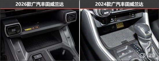 此外,新款威兰达在储物设计上也有取舍。老款威兰达在副驾驶前方配备了一个长条形储物槽,可用于放置一些常用的零散物品;而新款威兰达将这一区域做了精简调整,这部分的储物能力相比老款威兰达略有减弱。