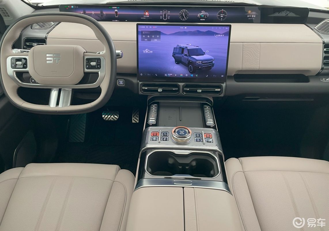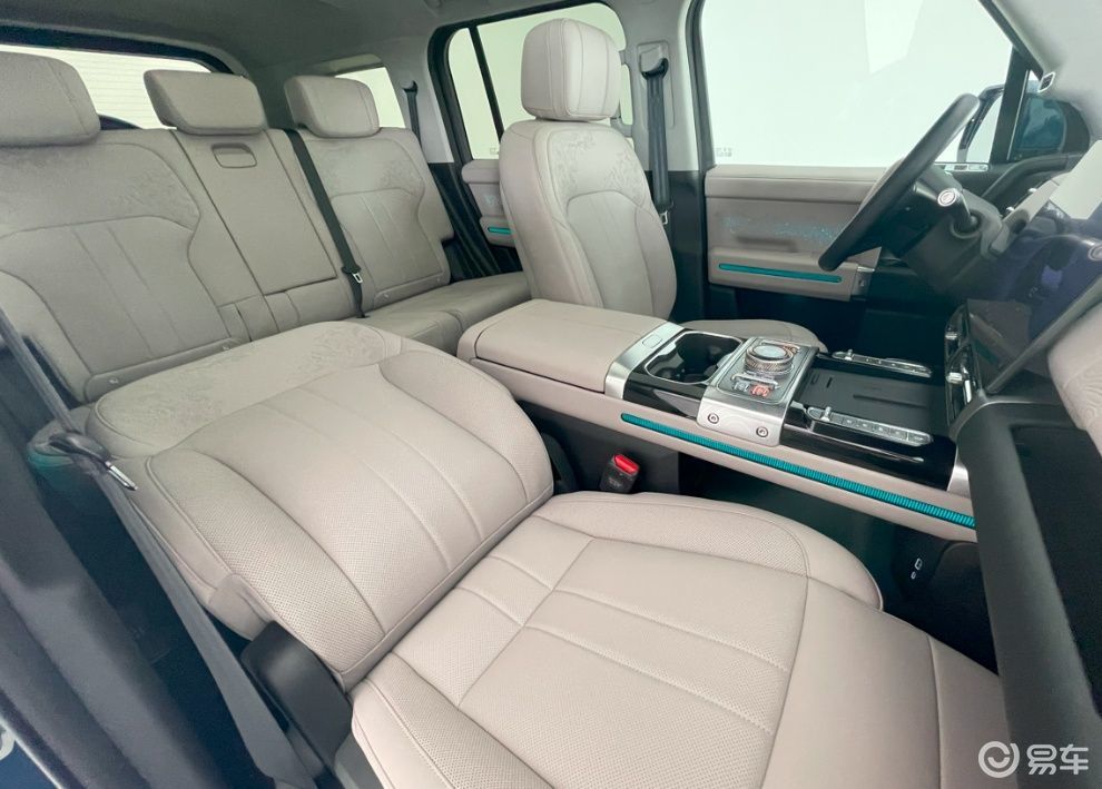 人性化设计当然还有中控台下方的隐藏式冷暖冰箱,支持-6℃制冷/50℃加热,实测可存放6罐啤酒+1份便当;出风口集成香氛盒,提供“雪松/咖啡/海风”三种香型,与负离子发生器联动净化空气;保留了必要的物理按键,方向盘越野模式按键采用凸起金属触感设计,戴手套也可盲操。