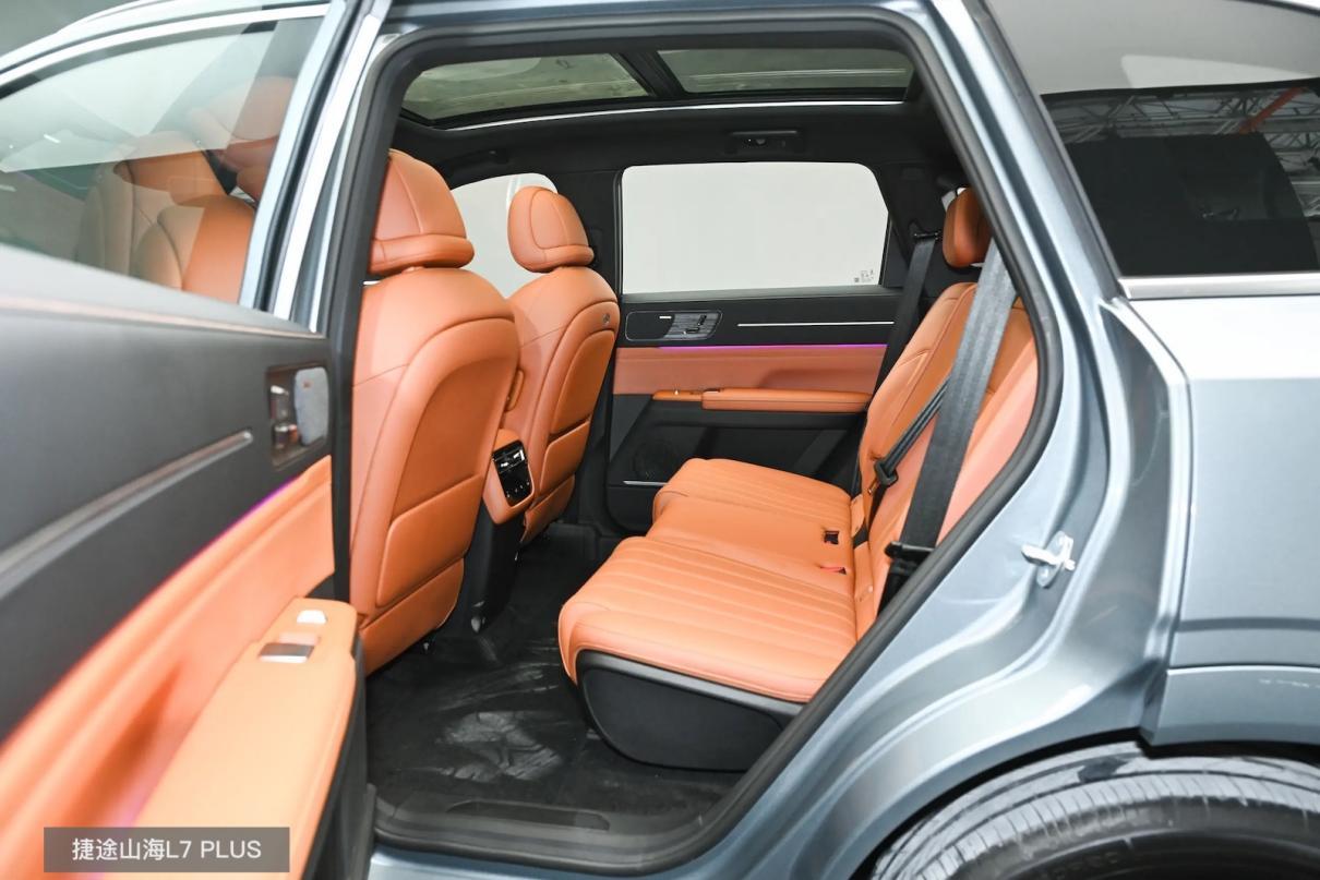 具体到座舱内来看,采用7座布局的捷途山海L7 PLUS全车座椅都支持电动调节,二排有131°靠背可调,可实现不同状态的32种座椅组合,也带有4种一键躺平模式,开累了千万别绷着,途中休息一会儿挺好。而且这些组合,用来露营过夜也可,上班开空调午休也可,舒适度蛮高的。