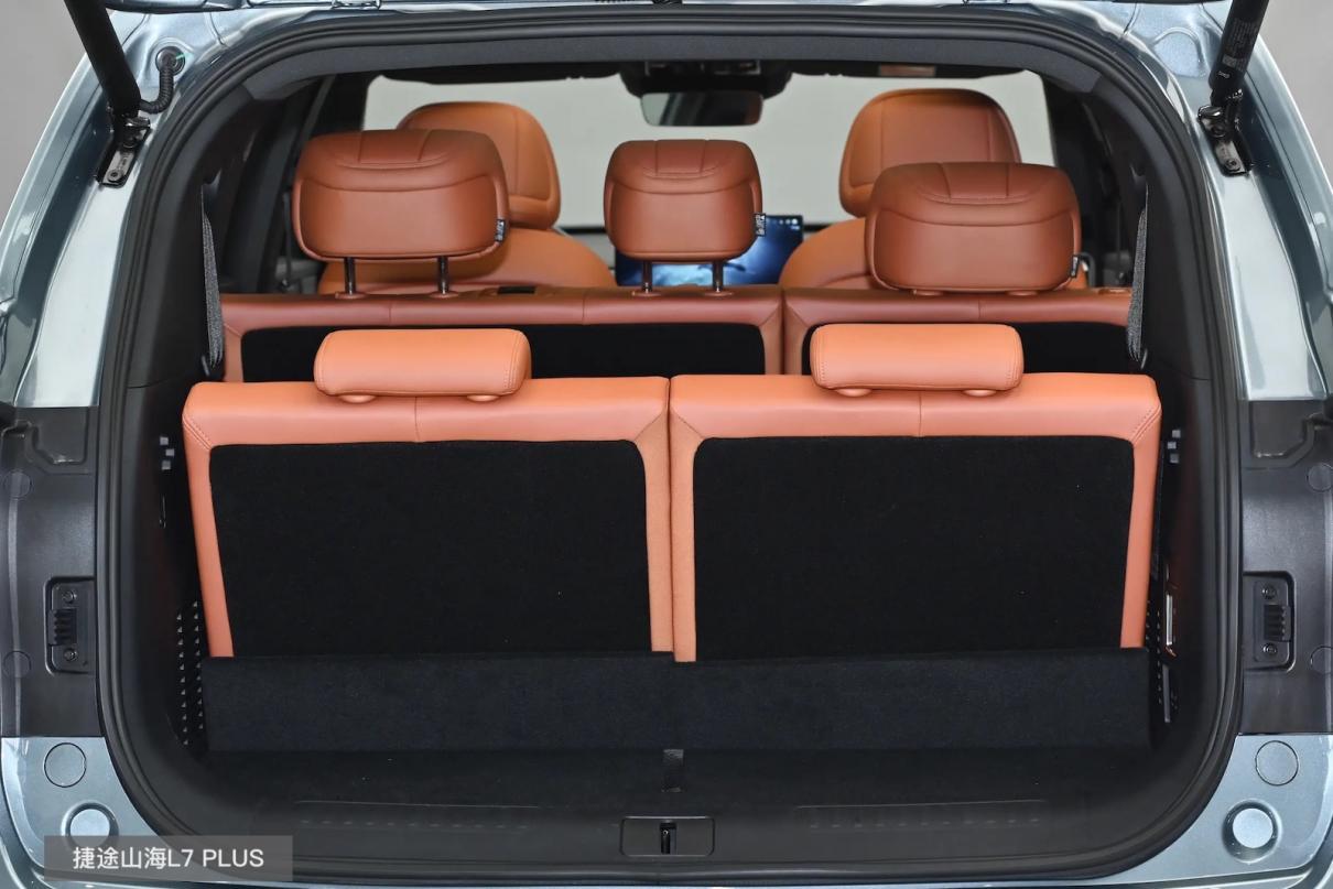 储物方面,捷途山海L7 PLUS在五座状态下有658L标准容积,且带有一个74L下沉储物,很适合满员时的扩展储物或是日常进行分区分层储物,省去不常用物件搬来搬去的繁琐;而二三排放倒后,其最大容积则为1708L,多功能储物与搬运上,都完全足够了。