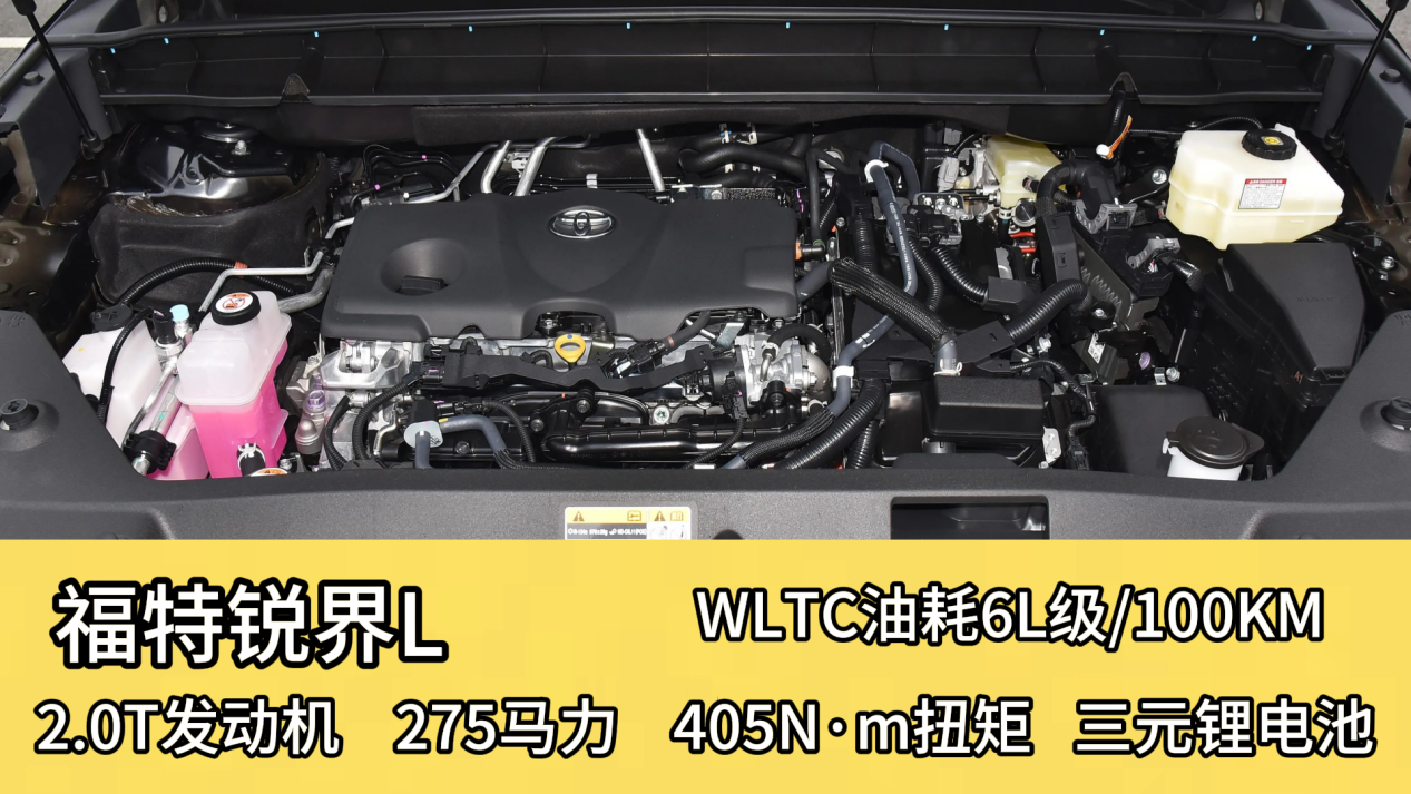 而锐界L的E混动车型,在省油的基础上,依然追求澎湃的动力表现。它所搭载的2.0T 第五代EcoBoost®发动机,可输出275马力,峰值扭矩达到了405N·m,比市面上绝大多数2.0T发动机的动力都要好,高效的三元锂电池搭配液冷散热系统,实际零百加速仅需7.1秒,综合百公里油耗控制在6L级。以牺牲一点点油耗的代价,换来更加出色的动力表现,这就是它和丰田双擎技术最大的区别。值得注意的是,别看福特E混动用的是2.0T发动机,却依旧可以加92号油,所以燃油经济性并不比双擎版汉兰达逊色多少。