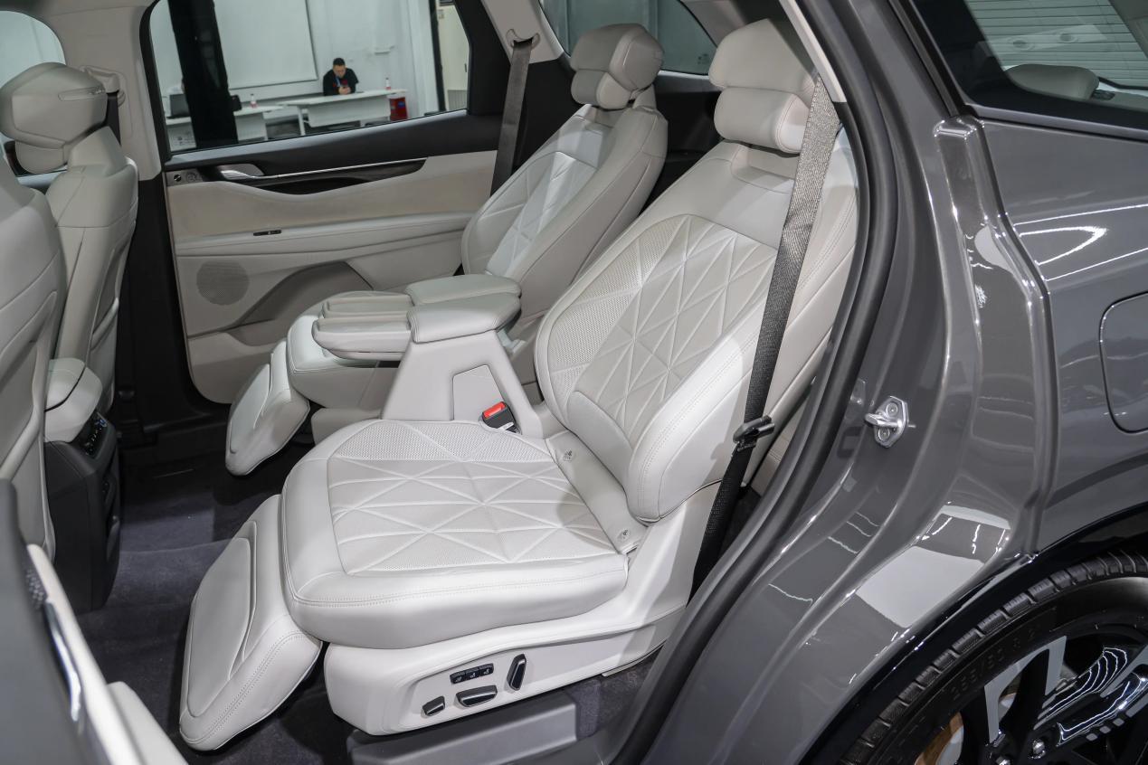 锐界L采用了2-2-3类似于MPV的布局模式。中间两个独立座椅加热、通风、零重力模式全都支持,还配备两个无线充电面板,中间过道宽度达到200毫米,简直就是头等舱般的享受。这种座椅布局存在的意义,不仅仅是二排的舒适性,还在于第三排乘客可以更加舒适地进出。说得更直白点,2-3-2布局第三排利用率极低,谁都不想坐后排小板凳。而2-2-3布局,在提高二排舒适度的同时,坐进第三排座椅,也不会感觉很压抑。