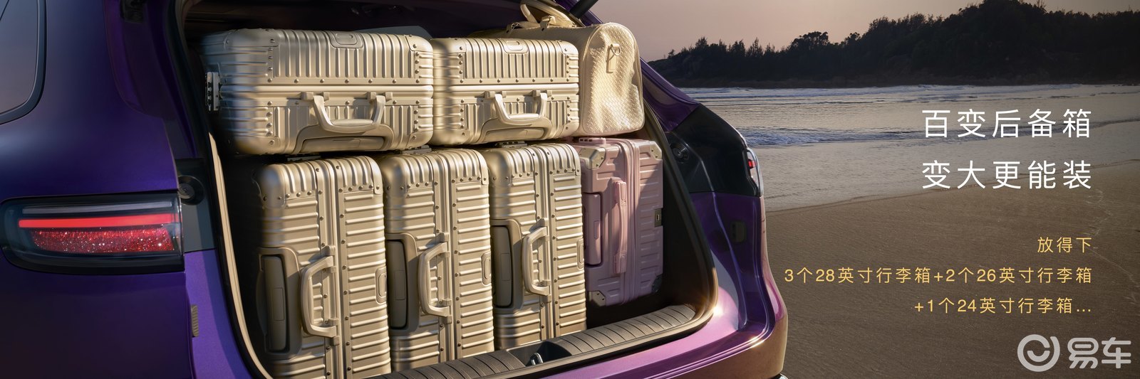 储物空间方面,纯电版车型的前备箱不仅可以容纳1个24英寸行李箱+1个20英寸行李箱,后备箱还能放得下3个28英寸行李箱+2个26英寸行李箱+1个24英寸行李箱,更有42L大容量的后备箱大暗格。
